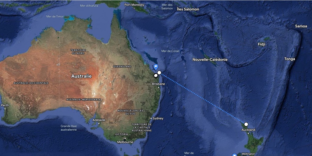 Nous sommes à 15 miles de la côte Australienne, le vent est toujours à 35 nœuds avec des rafales de 40 nœuds et nous avançons entre 10 et 12 nœuds malgré les 3 ris dans la grand voile et le petit bout de génois sorti que nous avons depuis des jours et des jours…Le jour se lève le port de Bundaberg n’est plus très loin, on tient le bon bout!