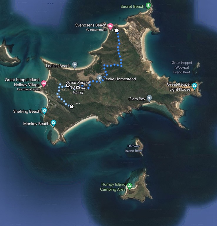 La météo annonce pas mal de vent d’est nous remontons vers les îles Keppel au large de la ville de Yeppoon. Elles sont au nombre de 3 et font parti du Parc National du Queensland. Great Keppel la plus au sud offre plusieurs chemins de randonnées qui permettent de visiter l’île et d’accéder à des points de vue sur l’archipel.