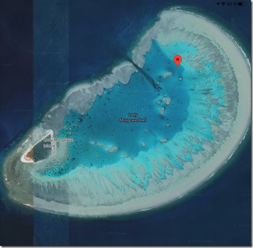 Nous voici aux portes de la grande barrière de corail. La passe de Lady Musgrave située au nord ouest est étroite mais protégée de la houle. Des coffres gratuits sont mis à disposition par le Queensland afin de protéger les fonds. Aucun n’est disponible mais avec nos cartes satellites et nos lunettes polarisantes nous trouvons une zone de sable sans aucune “patate de corail” autour.