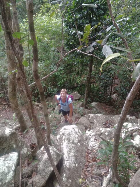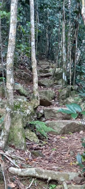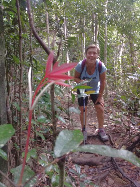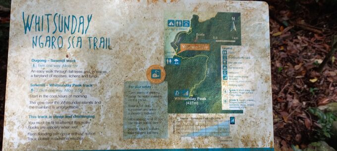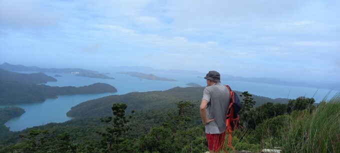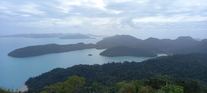 Le temps n’est pas terrible il a plu la veille mais nous voulons absolument faire la grande randonnée de 4 kms jusqu’au Whitsunday Peak à 437m. Elle n’est pas facile ça ne fait que monter, les rochers par endroits sont glissants je trouve que ça n’en fini pas. Alors nous faisons quelques arrêts photos bonnes “excuses” pour reprendre notre souffle!