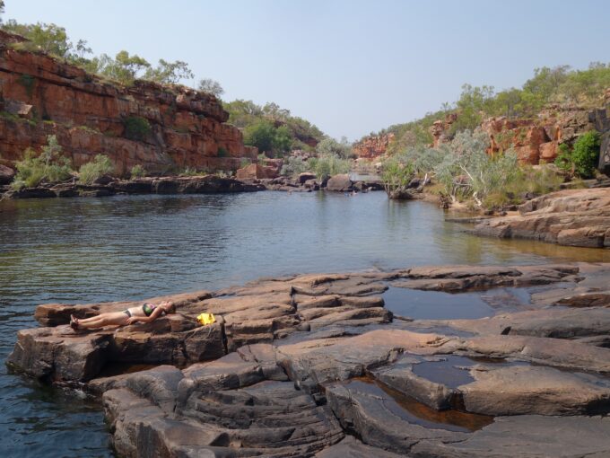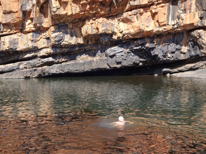 Nous apprécions la tranquillité du bassin pour nager, l’eau est tout de même bien plus fraîche qu’à Manning Gorge.