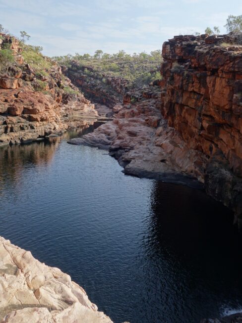 En deux heures de temps nous arrivons à Bell gorge dans la région montagneuse de King Léopold Ranges rebaptisée Wunaamin-Miliwundi Ranges. Un nom qui reflète bien la culture et le patrimoine aborigènes de la région.