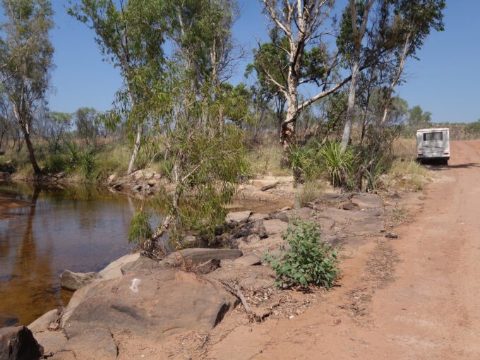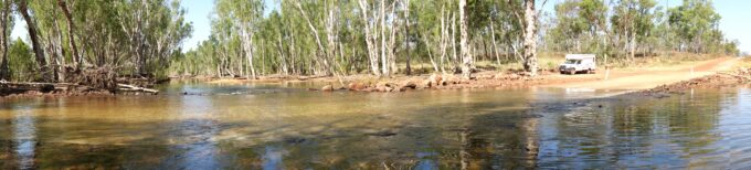 Après une nuit passée au camping d’El Questro nous retraversons la Pentecost River en mode ralenti le fond de la rivière est tapissé de gros galets.