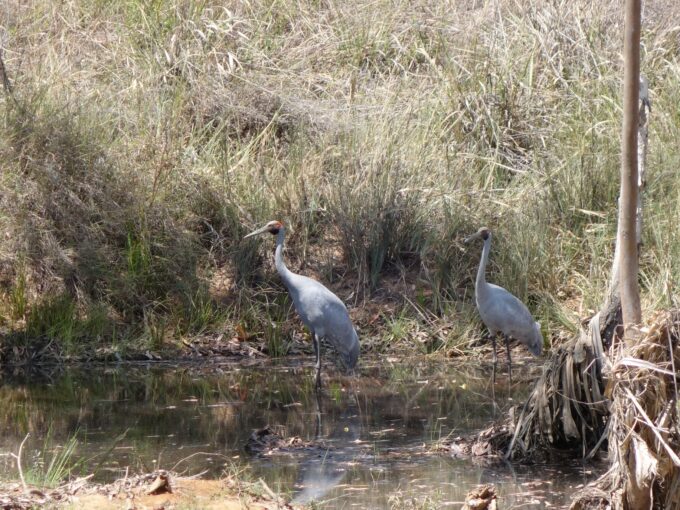 Nous surprenons deux Brolgas (de la famille des Grues) en quête de fraîcheur!