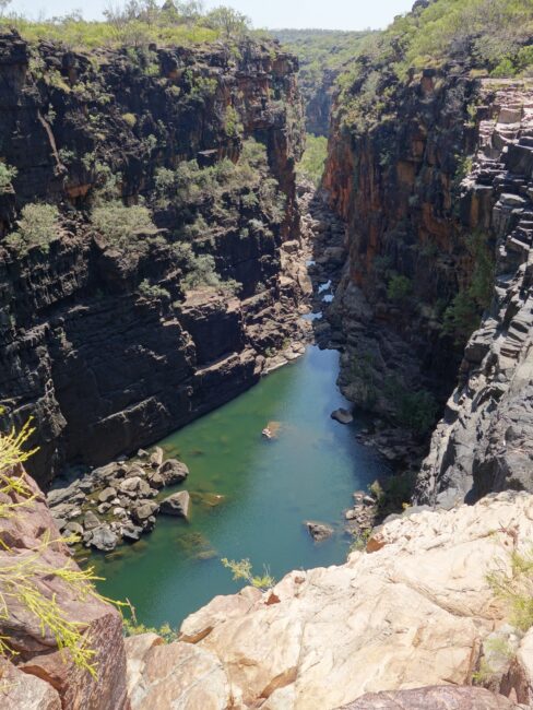 À la fin du sentier, on surplombe la rivière donnant naissance aux Mitchell Falls.