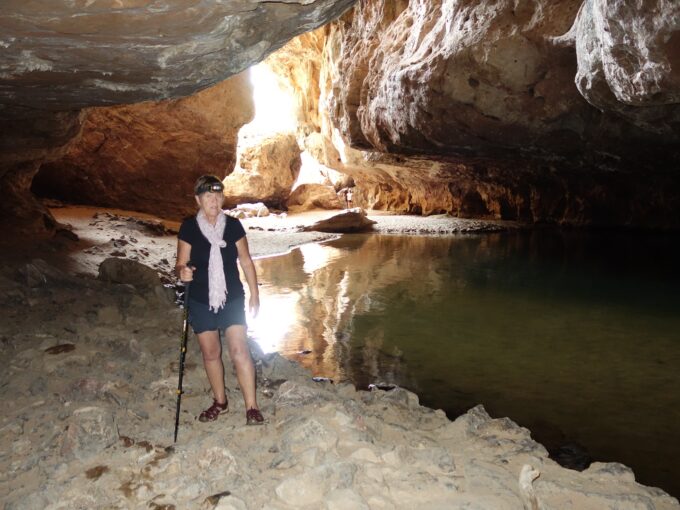 Situé dans le Parc National de Tunnel Creek la grotte est un lieu étonnant. Avec le temps la rivière a creusé un tunnel d’environ 750m à travers un éperon rocheux. Pour découvrir la grotte une lampe étanche est indispensable car on se retrouve vite dans le noir complet. Il faut traverser un bassin avec la présence de crocodiles d’eau douce 🐊 (freshwater crocodiles) et moi ça ne m’inspire pas trop du aller!