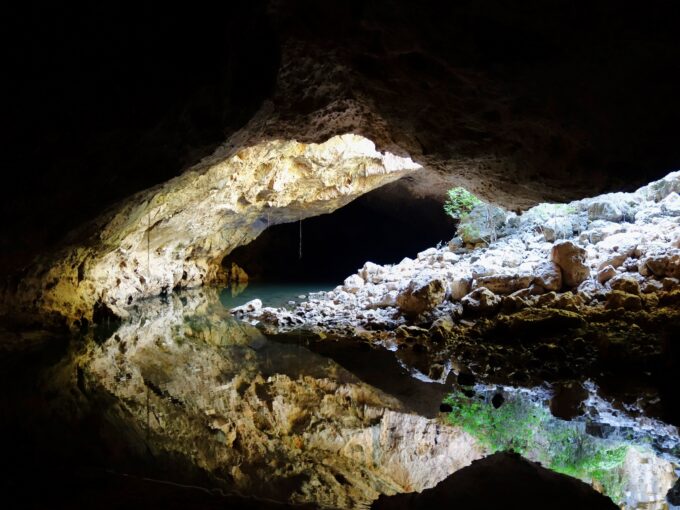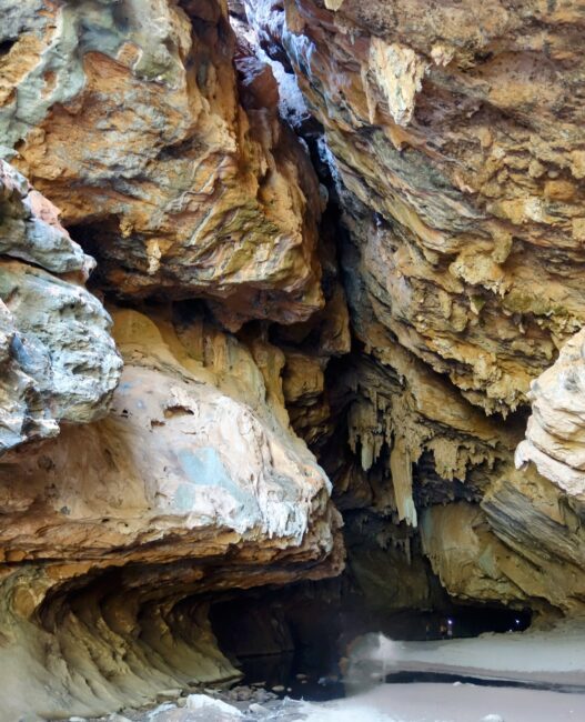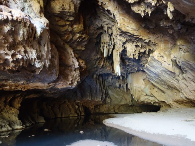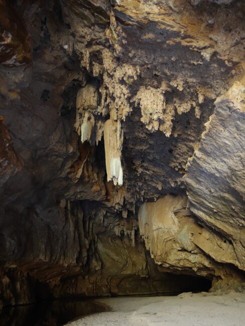 notamment des stalactites et des stalagmites, et abrite également une variété de chauves-souris et de pythons olive, serpents non venimeux d’Australie qui peuvent mesurer jusqu’à 4m50.