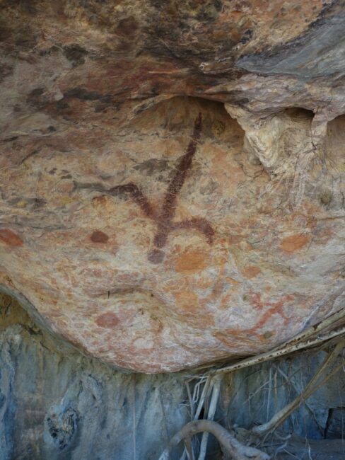 Quelques peintures rupestres dissimulées de l’autre côté au fin fond de la grotte.