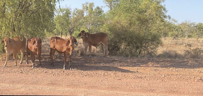 Nous reprenons la piste de Fairfield Léopold Downs vers Fitzroy crossing sur laquelle nous croisons de nombreux troupeaux. Ceux là prennent tout leur temps pour traverser la piste.