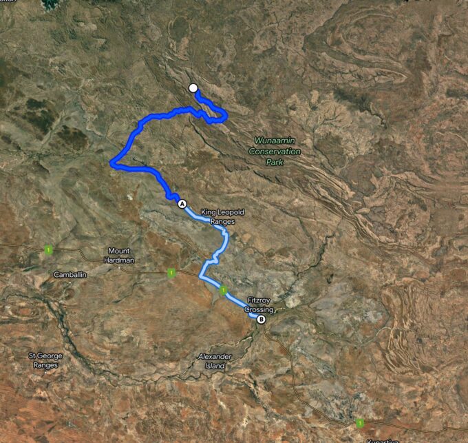 Notre itinéraire de Bell Gorges à Fitzroy Crossing.