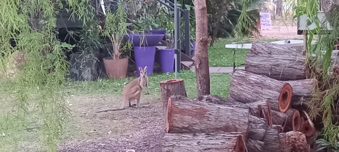Une fois installés il ne reste plus qu’à lever le toit du Van, ouvrir les fenêtres, installer la table, les chaises et dérouler l’auvent qui nous donne quelques soucis au niveau de la fixation des pieds. Le soleil va bientôt disparaître une douche s’impose avant de célébrer à la brasserie familiale du camping notre première nuit en pleine nature parmi les wallabies.