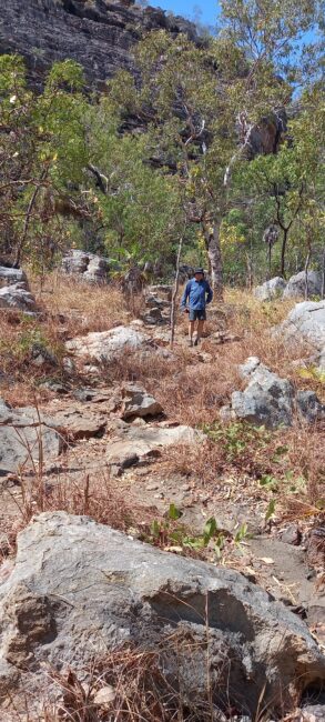 Après notre promenade nous allons au site Aborigène de Nanguluwurr. Il fait très chaud et pour y accéder le sentier n’est pas ombragé mais nous ne voulions pas rater cette petite expédition”culturelle”
