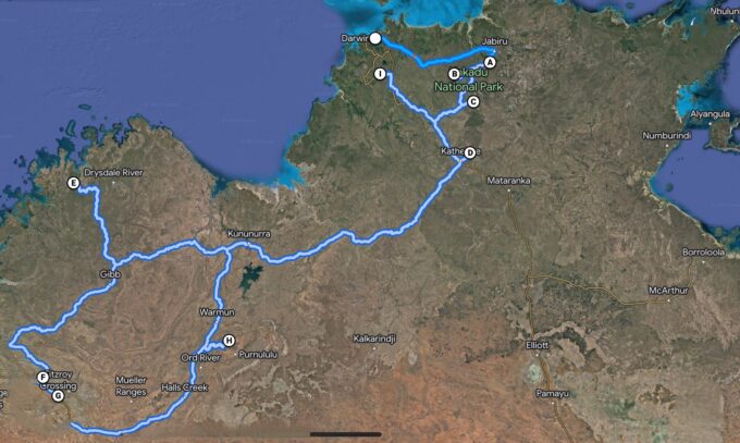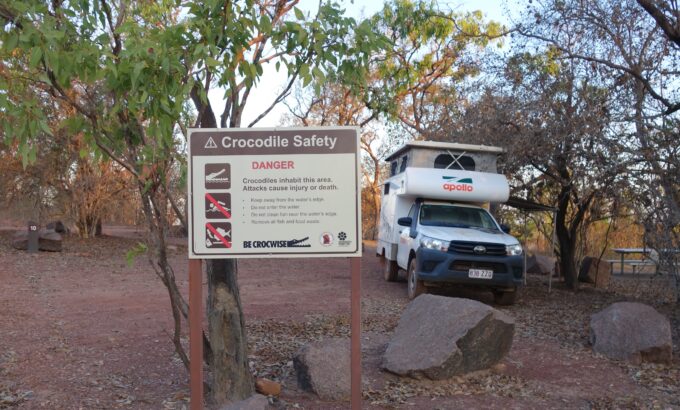 Après avoir laissé le bateau dans la marina de Townsville nous nous envolons jusqu’à Darwin pour récupérer notre 4X4 Camper Van. Au programme quatre semaines dans le territoire nord de l’Australie et la région des Kimberley qui offrent une grande variété de paysages : des kilomètres de pistes désertiques, des parcs nationaux, des cascades au cœur de forêts tropicales, des formations rocheuses uniques et des espèces animales que l’on n’a pas vraiment envie d’approcher de trop près!