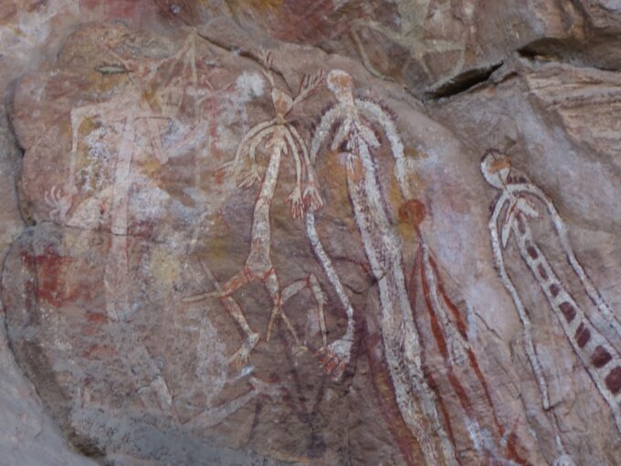 Après cette matinée relaxante sur la rivière direction le Kakadu National Park. C’est le plus grand parc national d’Australie classé au patrimoine mondial de l’UNESCO. Cette région considérée par les Aborigènes comme sacrée leur a été rendue en 1976. La culture Aborigène est fortement représentée on y trouve des sites de peintures anciennes dont l’accès est ouvert aux touristes mais les lieux sacrés qui mettent en avant le respect de leurs ancêtres créateurs sont interdits.