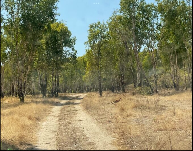 Nous restons deux jours pour avoir le temps de découvrir toutes ces richesses. La Jim Jim road que nous empruntons est une piste de 170 kms vallonnée au cœur du Kakadu National Park. Les différentes espèces d’eucalyptus défilent à perte de vue et les traînées de poussière jaunâtre que nous laissons derrière nous ne nous quittent pas.